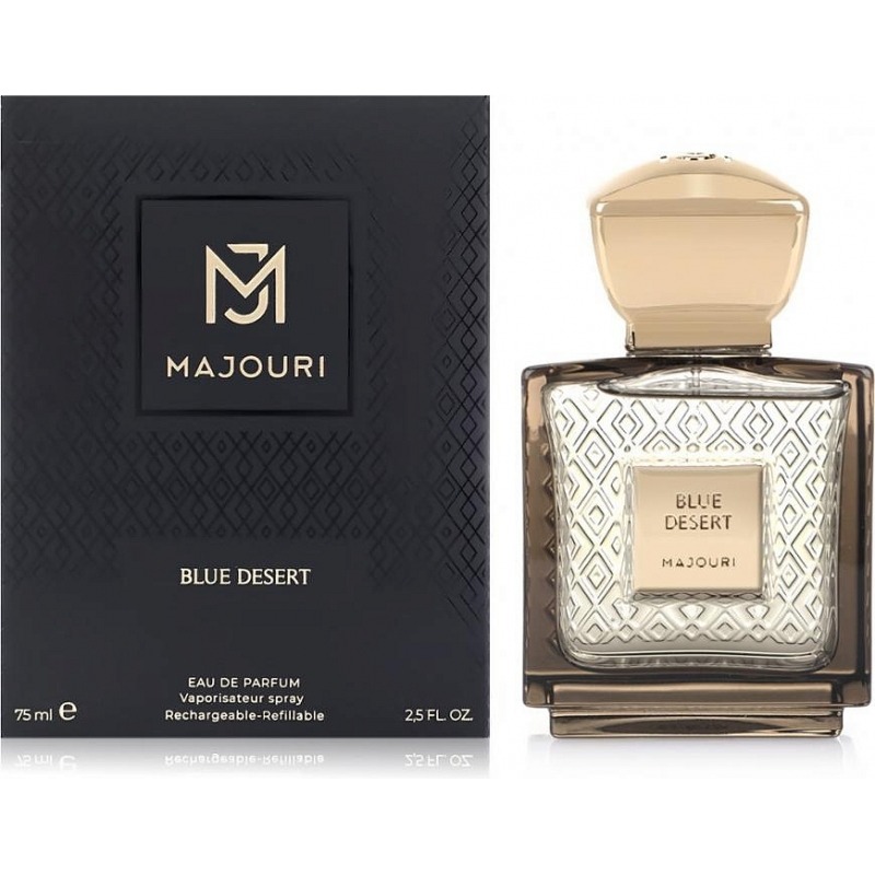 Брутальная композиция Blue Desert от Majouri напоминает освежающий и жизнерадостный рассвет. Когда солнце дает волшебный эффект «голубого песка». Это идеальный эликсир для тех, кто стремится к побегу из пыльного мегаполиса. Парфюмерная вода издана креативным французским брендом в 2019 году. Фирменный флакон окрашен в золотистый, песочный цвет.