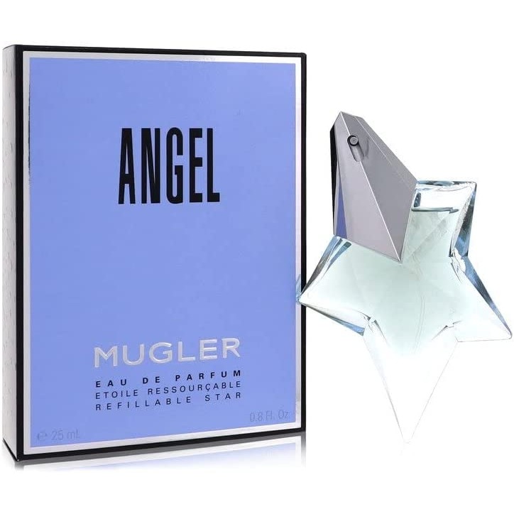 Angel от MUGLER – первый аромат в линейке, который в 1992 году придумал Оливье Кресп. Эта сладкая женская композиция не включила в состав ни одного цветка. Вместо этого парфюмер использовал запахи ванили, шоколада, карамели. В основу композиции положены ноты пачули и сандалового дерева, в середине чувствуются специи – мускатный орех и тмин. Первое впечатление создают запахи ананаса, бергамота и розового перца. Духи Angel MUGLER – это сочетание сладости, чувственности и глубины, которое и привлекает мужчин в женщинах.